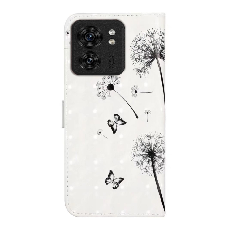 Funda de Cuero para Motorola Edge 40 con Dibujo 3D en Relieve al Óleo (Pareja de Diente de León)