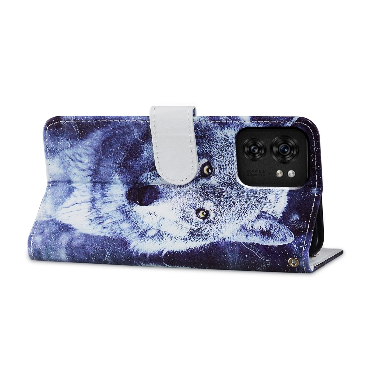 Funda de Cuero para Motorola Edge 40 con Tapa Horizontal y Patrón Pintado (Lobo Blanco)