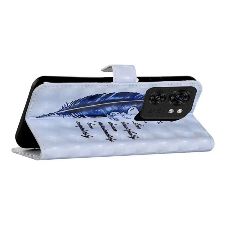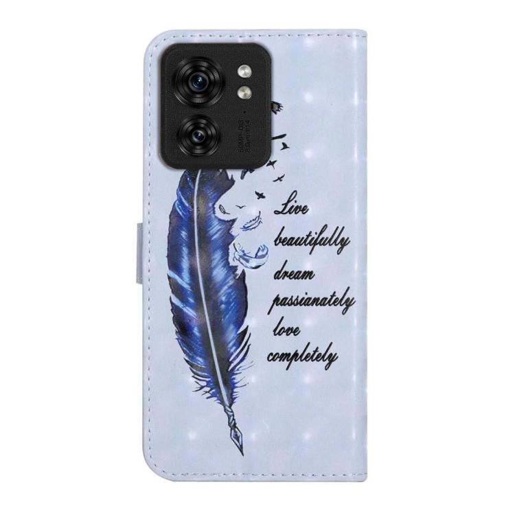 Funda para Motorola Edge 40 de Cuero con Dibujo 3D en Relieve al Óleo (Pluma Azul)