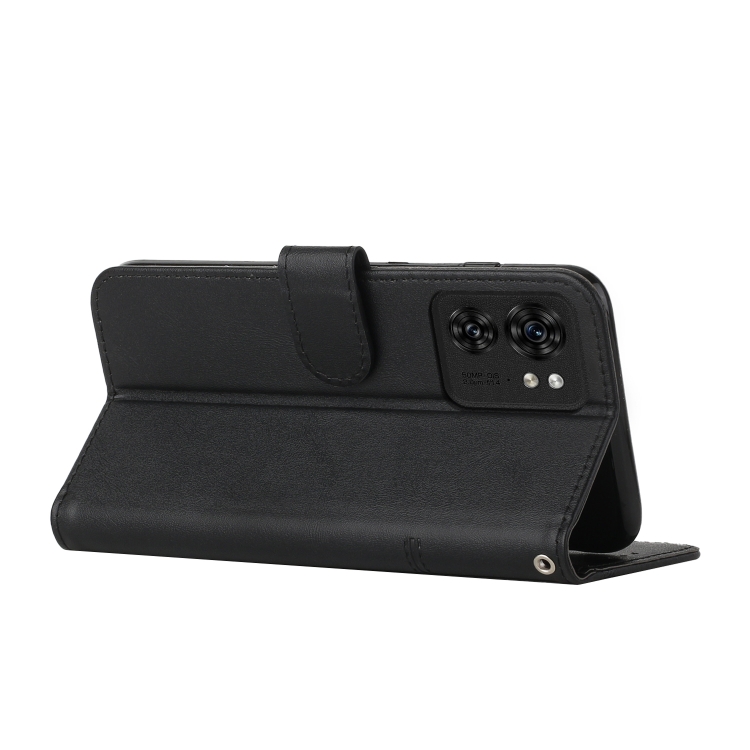 Funda para Motorola Edge 40 de Cuero con Hebilla y Textura de Becerro con Costura (Negro)