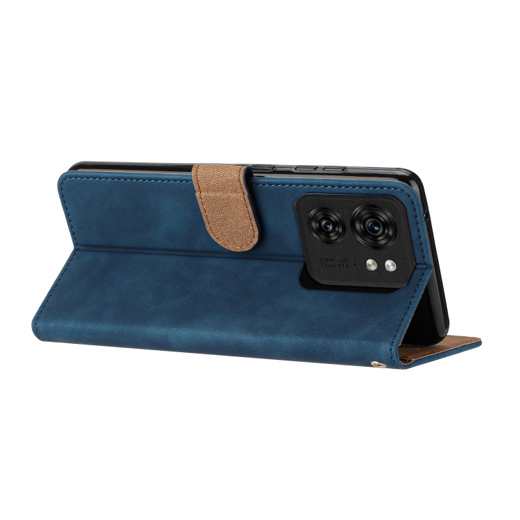 Funda para Motorola Edge 40 de Cuero con Relieve de Siete Mariposas (Azul)