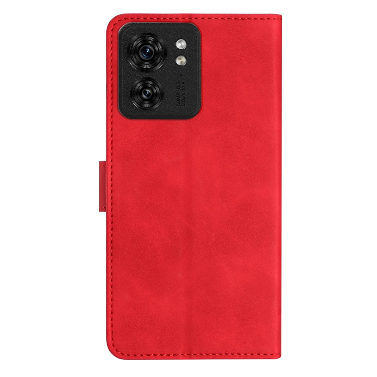 Funda para Motorola Edge 40 de Cuero con Relieve de Siete Mariposas (Rojo)