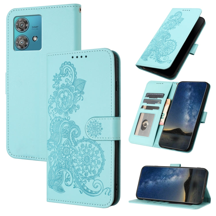 Funda de Cuero para Motorola Edge 40 Neo 5G con Tapa en Relieve Datura Flower (Azul Claro)