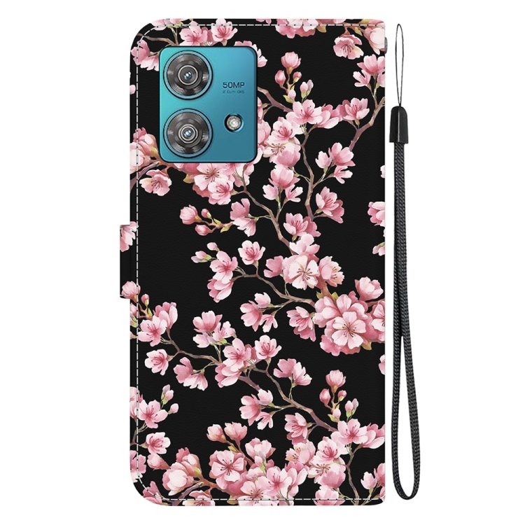 Estuche para Motorola Edge 40 Neo de Cuero con Dibujo Coloreado y Textura de Cristal (Flor de Ciruelo)