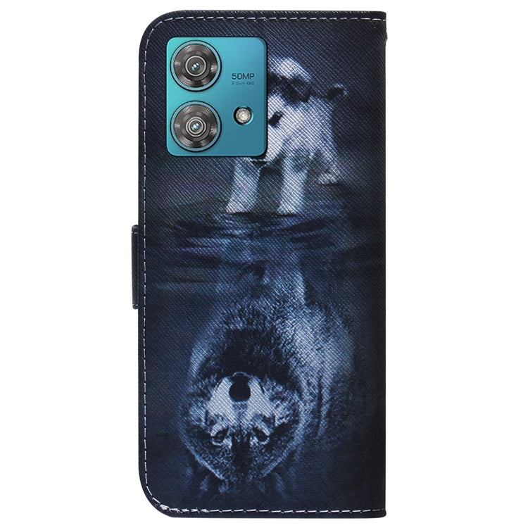 Funda de Cuero con Tapa para Motorola Edge 40 Neo con Dibujo Coloreado (Lobo y Perro)