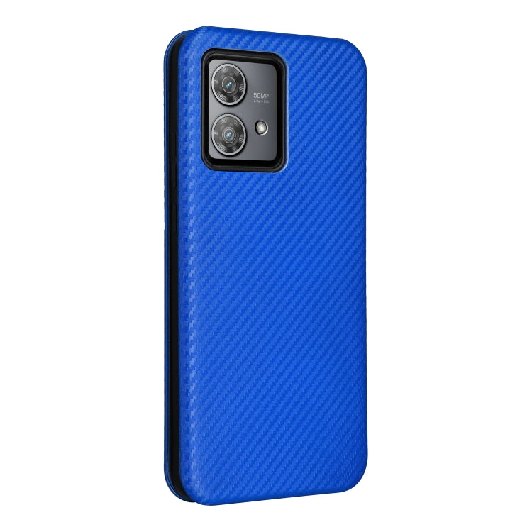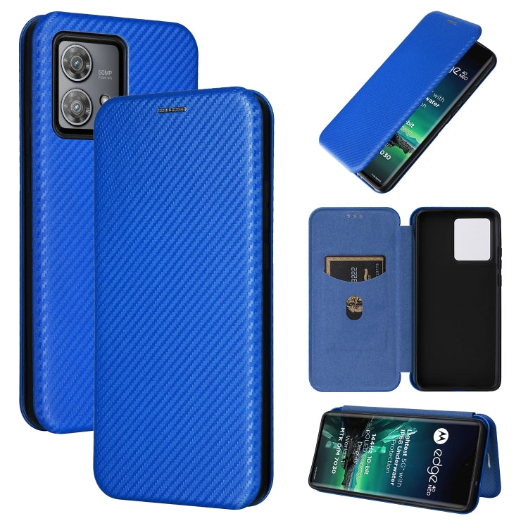 Funda de Cuero para Motorola Edge 40 Neo con Tapa y Textura de Fibra de Carbono (Azul)