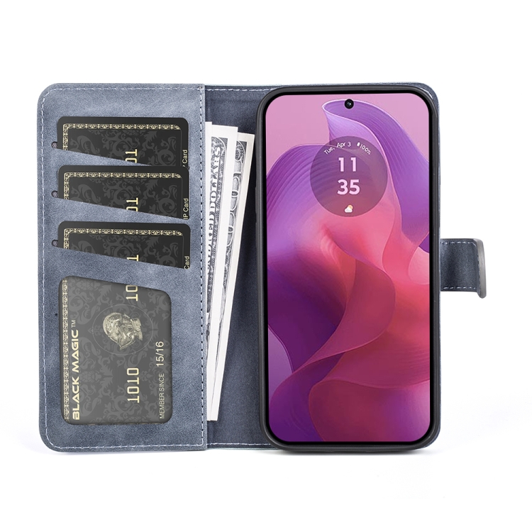 Funda de Cuero para Motorola Edge 40 Neo con Tapa Horizontal y Costura (Azul)