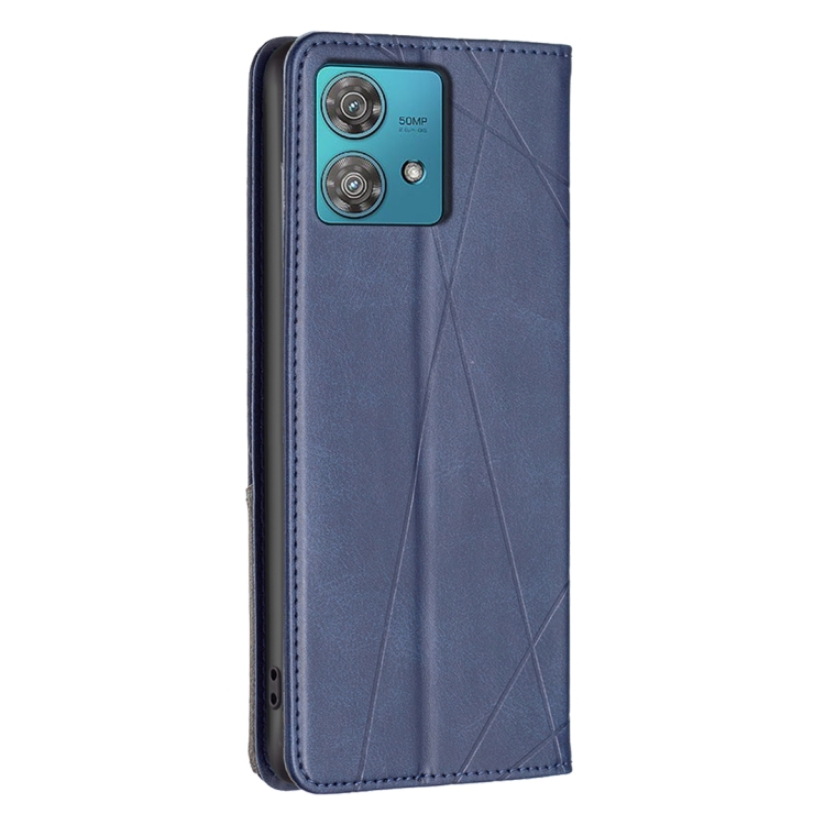 - 1x Funda de Cuero Magnético para Motorola Edge 40 Neo con Textura Rombo (Azul)