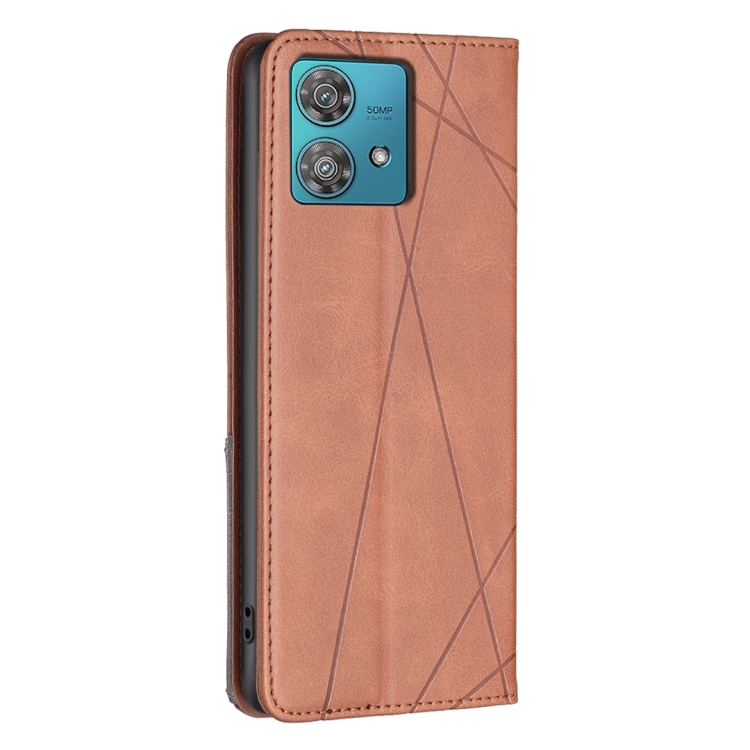 - 1x Funda de Cuero Magnética para Motorola Edge 40 Neo con Textura Rombo (Marrón)