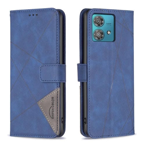 Funda para Motorola Edge 40 Neo de Cuero con Textura de Rombo y Hebilla Magnética (Azul)