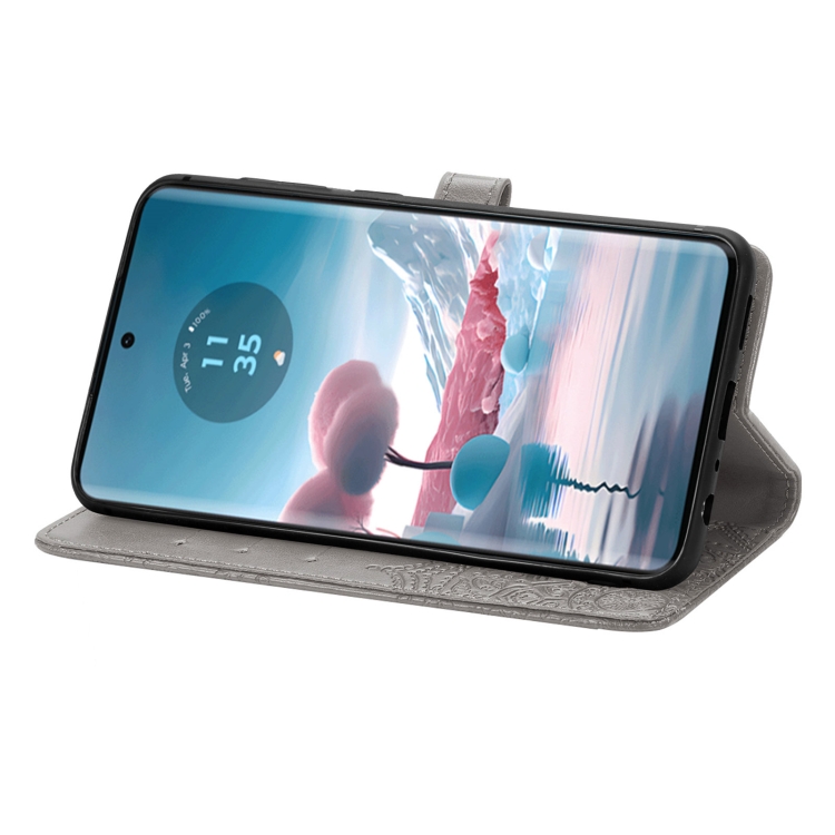 Funda de Cuero para Motorola Edge 40 Neo Mandala Flower en Relieve (Gris)