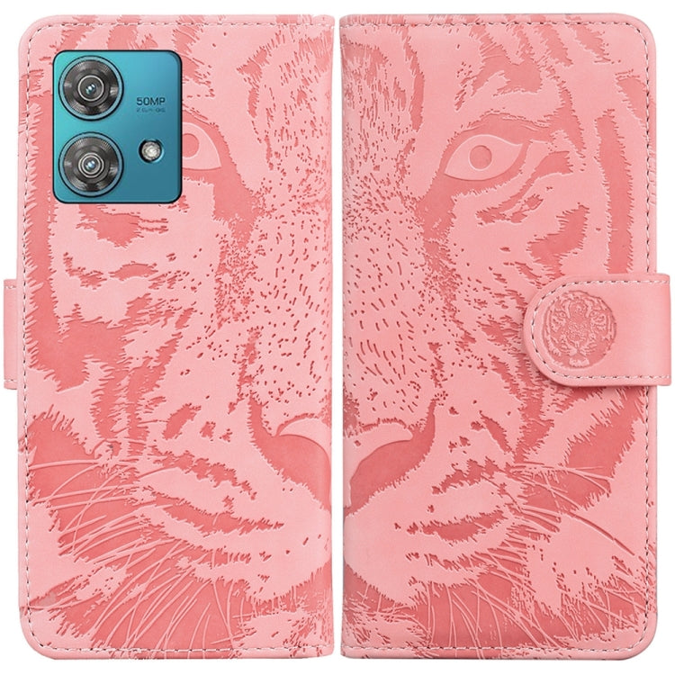 Funda de Cuero para Motorola Edge 40 Neo Tiger con Patrón en Relieve (Rosa)