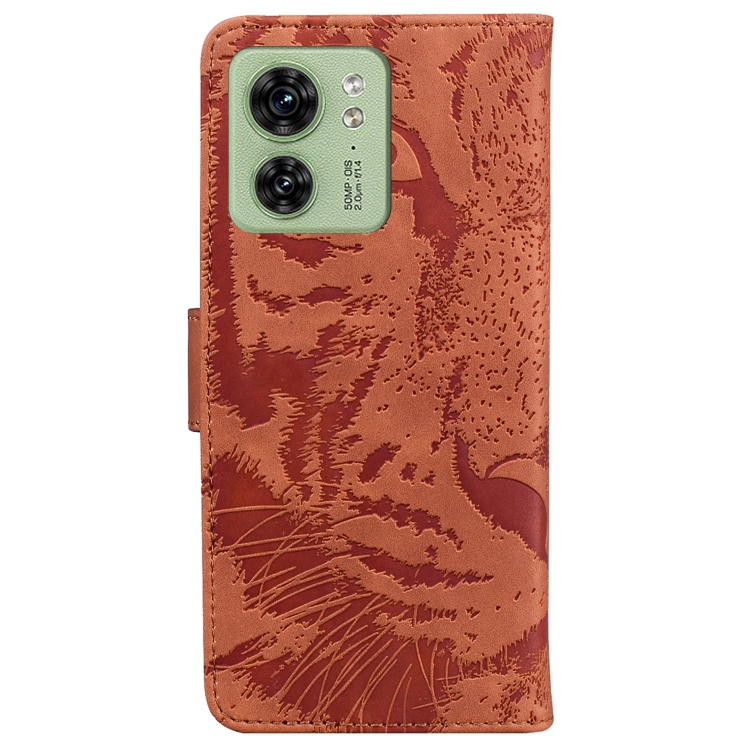 - 1x Funda de Cuero para Motorola Edge 40 Tiger con Relieve Patrón (Marrón)