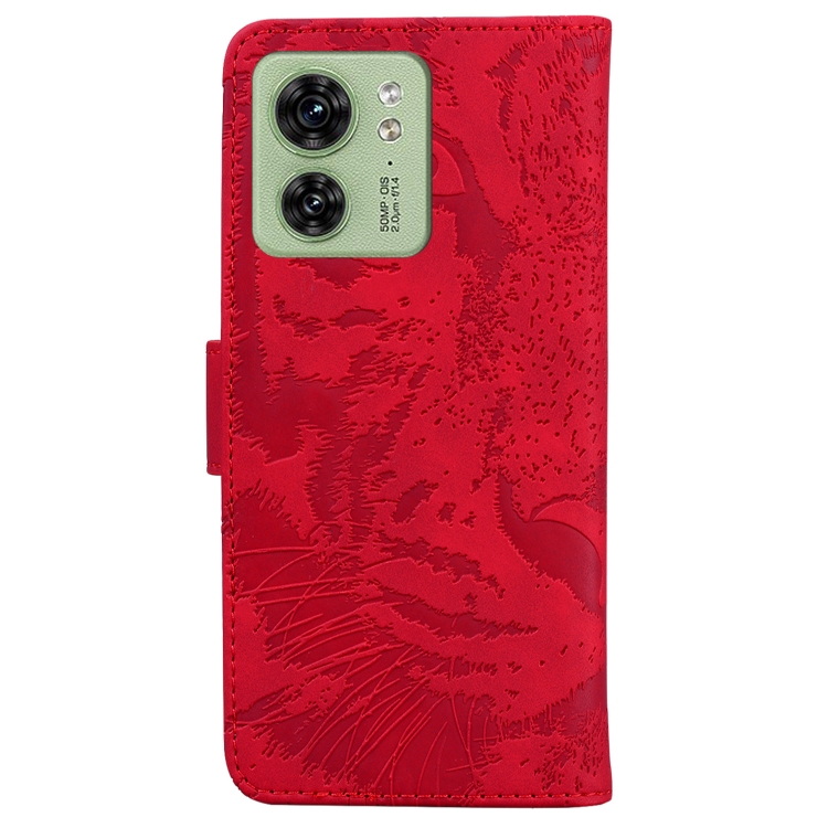 - 1x Funda de Cuero para Motorola Edge 40 Tiger con Relieve Patrón (Rojo)