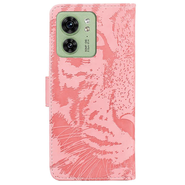 - 1x Funda de Cuero para Motorola Edge 40 Tiger con Relieve Patrón (Rosa)