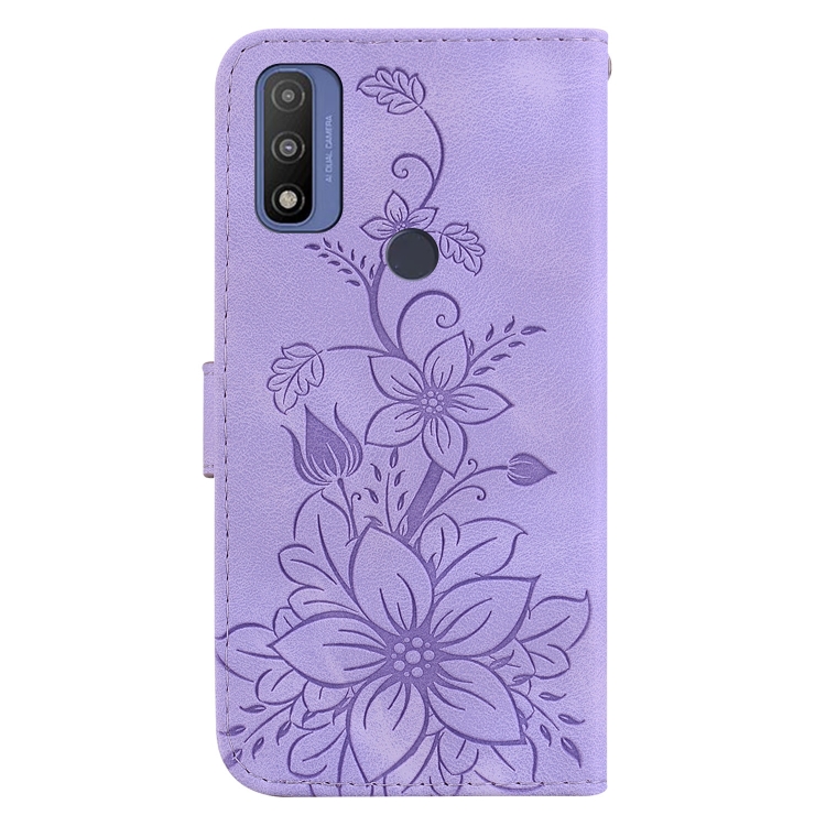 Funda de Cuero en Relieve para Motorola G Pure Lily para Teléfono (Púrpura)