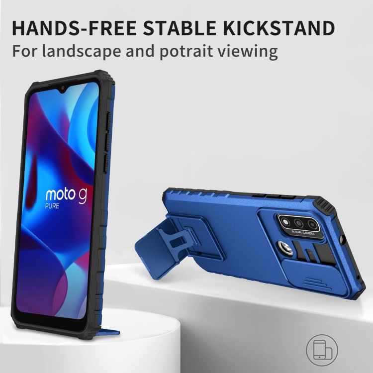 - 1x Funda Deslizante Stereoscopic Holder para Motorola G Pure con Camshield (Azul)