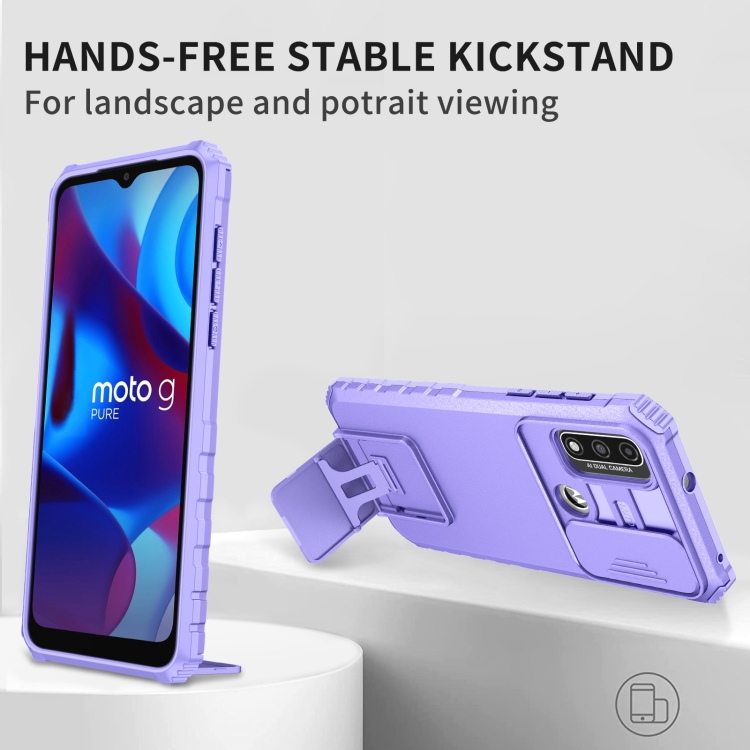 - 1x Funda para Motorola G Pure Stereoscopic Holder con Sliding Camshield (Púrpura)