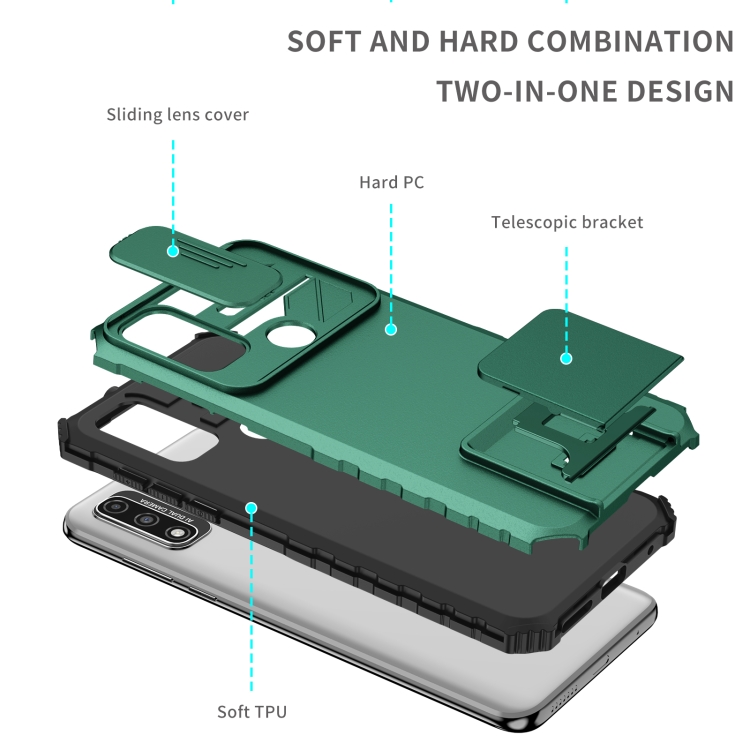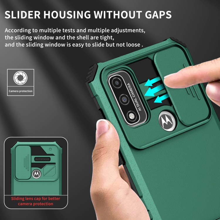Funda para Motorola G Pure con Soporte Estereoscópico y Protector Deslizante (Verde)