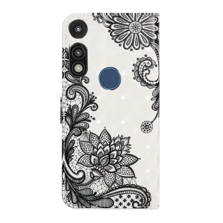 Funda de Cuero para Motorola Moto E 2020 con Dibujo 3D en Relieve al Óleo (Flor de Encaje)