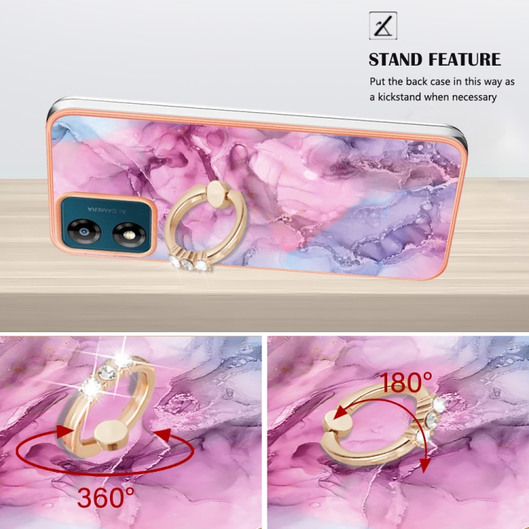 - 1x Caja para Motorola Moto E13 IMD de doble cara Mármol Galvanizado con Anillo (Rosa)