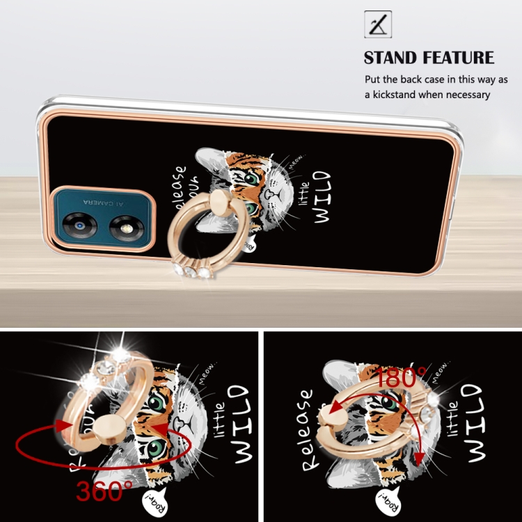 Funda para Motorola Moto E13 Galvanoplastia IMD Doble Cara con Soporte para Anillo (Crecimiento Natural)