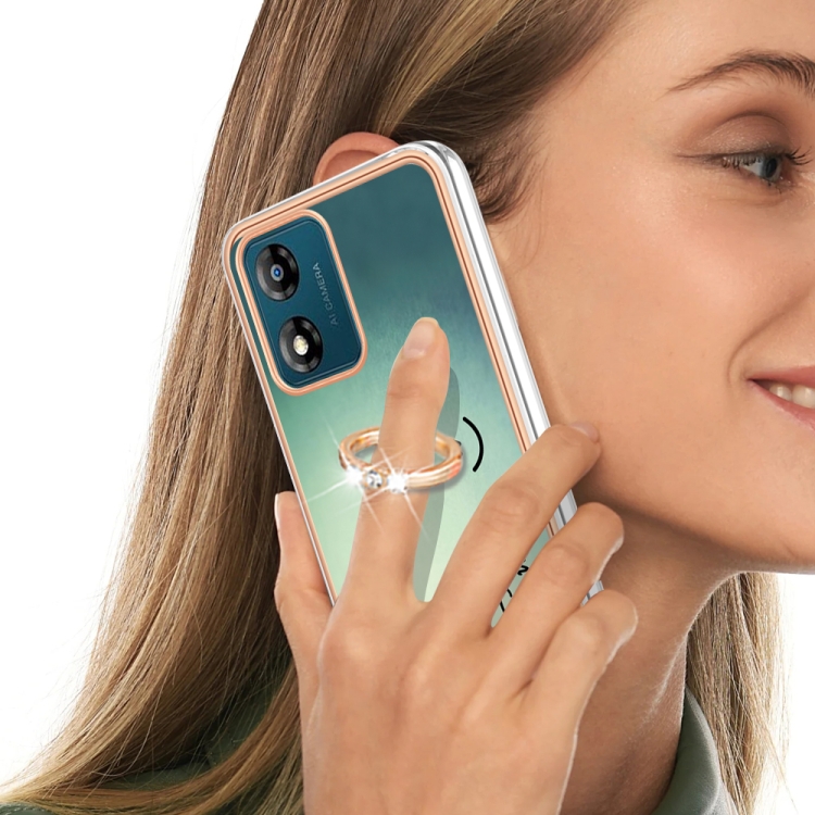 La Funda para Motorola Moto E13 con galvanoplastia IMD de doble cara y Soporte para anillo (Sonrisa) está diseñada para ofrecer una protección integral y funcionalidad avanzada para este modelo específico. Fabricada en TPU, un material conocido por su resistencia al desgaste y a los arañazos, esta Carcasa garantiza la conservación estética y estructural del dispositivo. Su diseño incluye una doble cara con acabado de galvanoplastia IMD que aporta un patrón de mármol elegante y moderno, además de un Soporte para anillo integrado que facilita el manejo seguro del Teléfono. Esta Funda es compatible exclusivamente con el Motorola Moto E13, asegurando un ajuste preciso y acceso sin obstáculos a todos los Botones, Puertos y funciones del Teléfono.