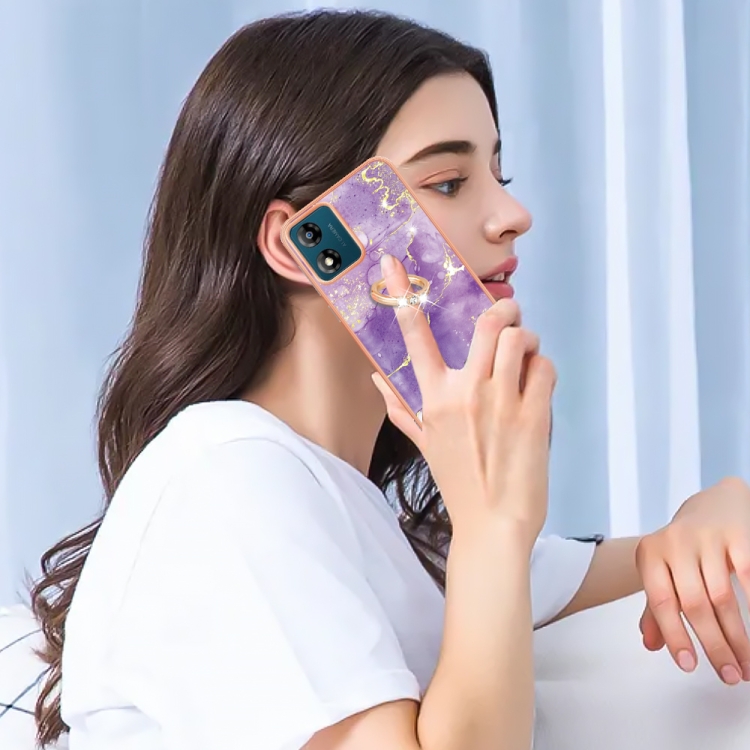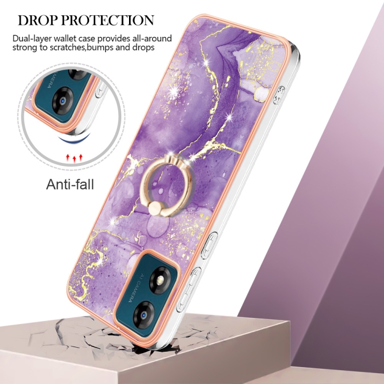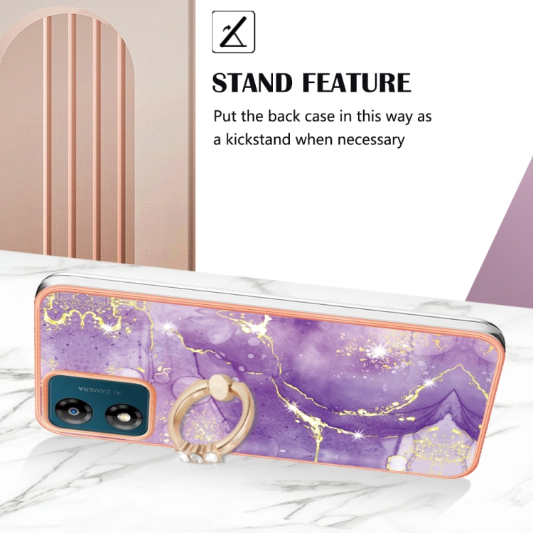 - 1x Funda para Motorola Moto E13 Galvanoplastia Mármol IMD TPU con Soporte para Anillo (Púrpura)