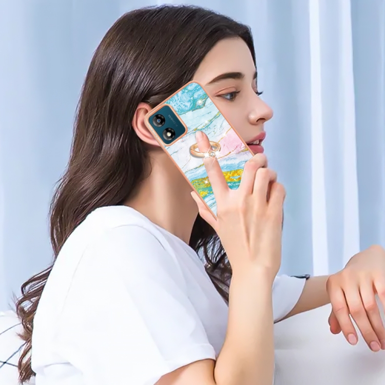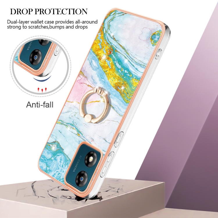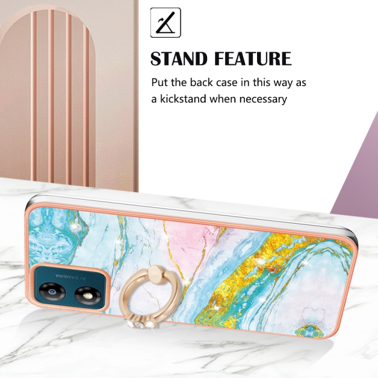 Funda para Motorola Moto E13 Galvanoplastia Mármol Imd TPU con Soporte para Anillo (Verde)