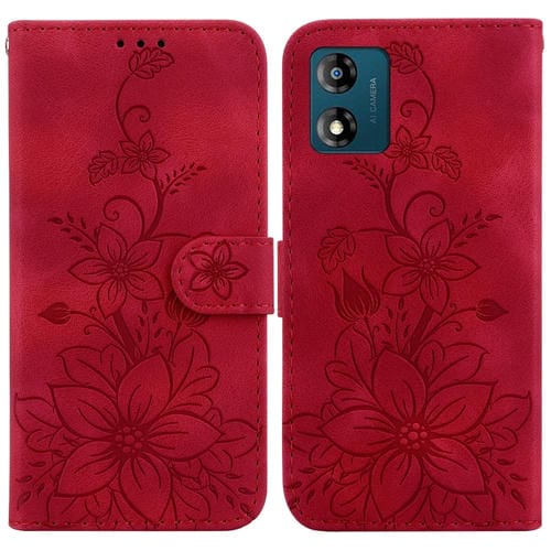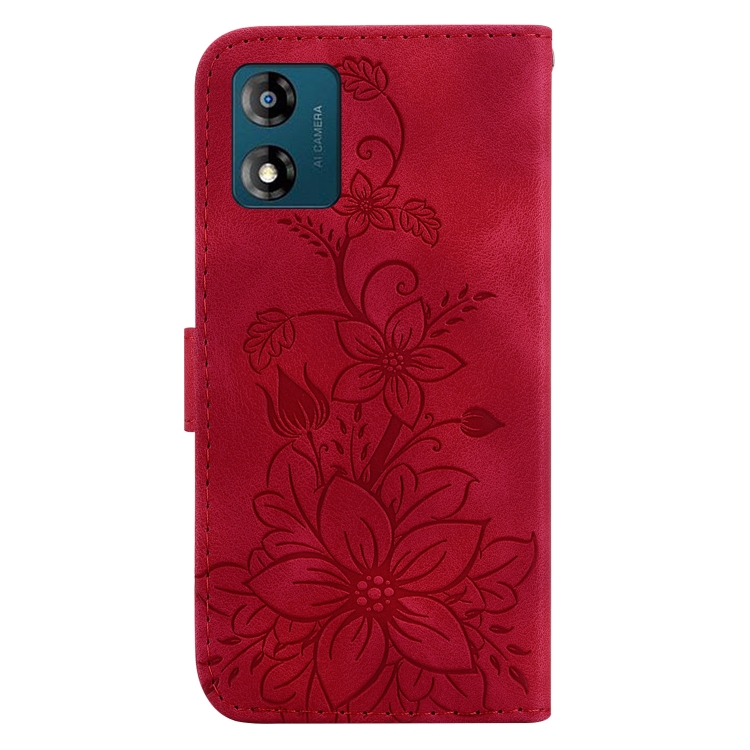 Funda de Cuero en Relieve para Motorola Moto E13 Lily para Teléfono (Rojo)