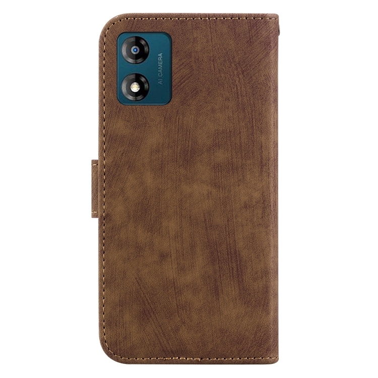 Funda de Cuero para Motorola Moto E13 Little Tiger en Relieve (Marrón)