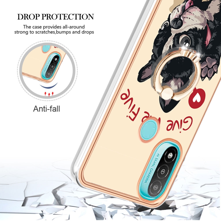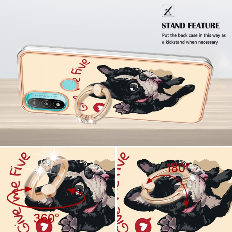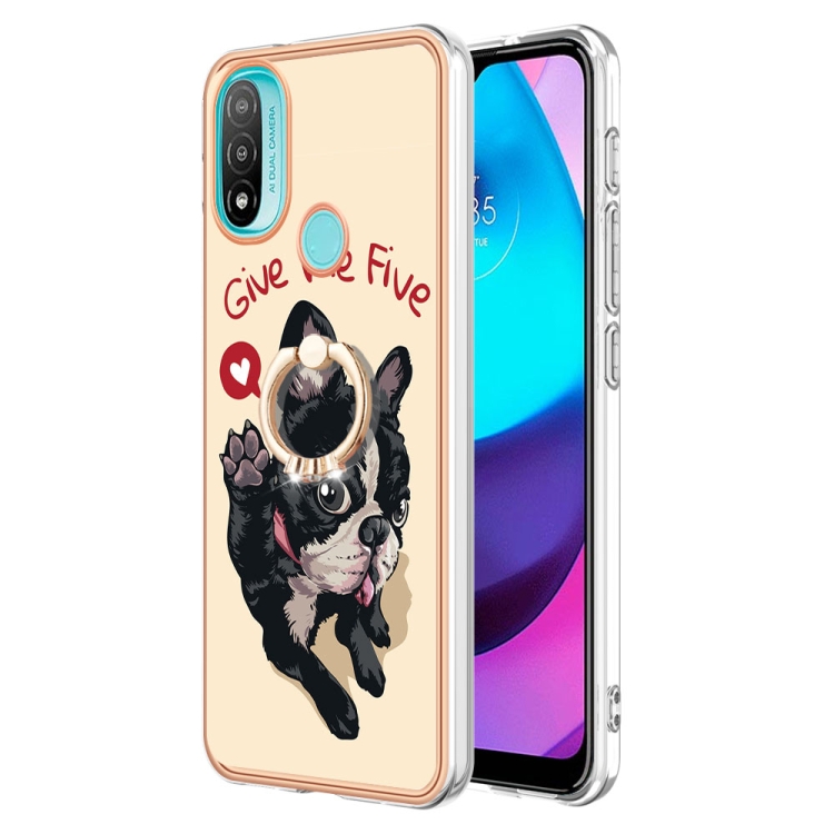Caja para Motorola Moto E20 / E30 / E40 Imd Doble Cara Galvanizada con Soporte para Anillo (Perro de la Suerte)