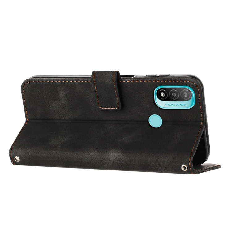Funda de Cuero con Cordón para Motorola Moto E20 / E30 / E40 Dream Triangle (Negro)