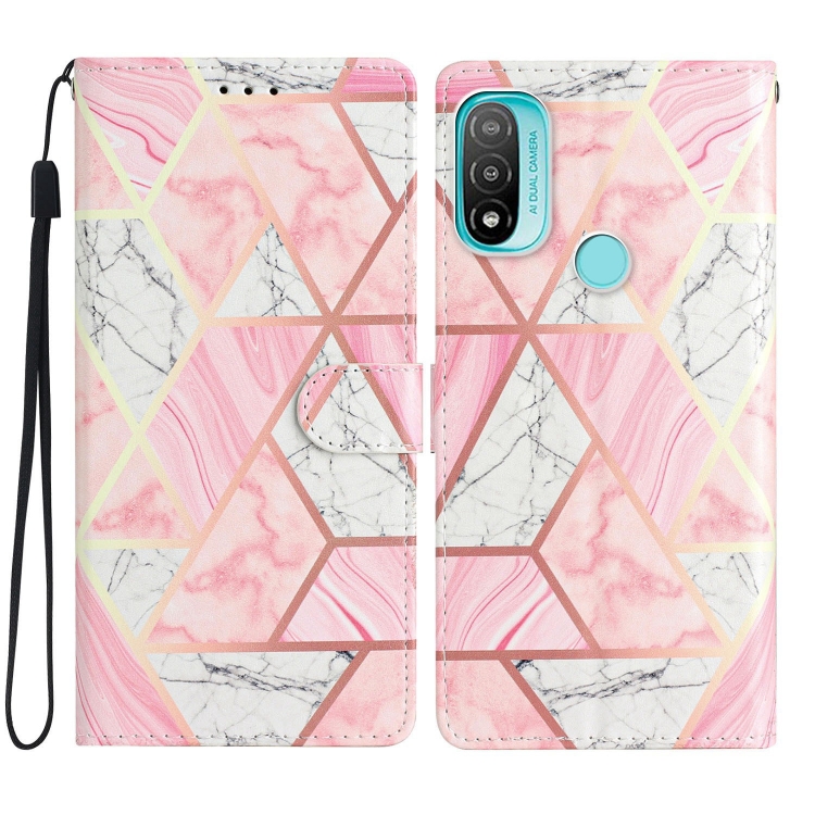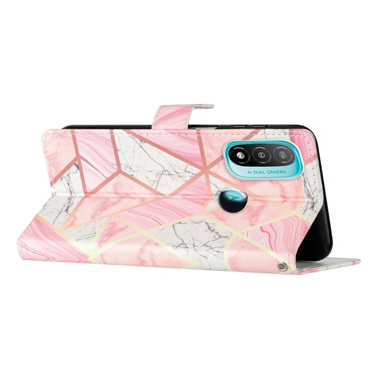 Estuche para Motorola Moto E20 E30 E40 de Cuero con Dibujo Coloreado Mármol Rosa