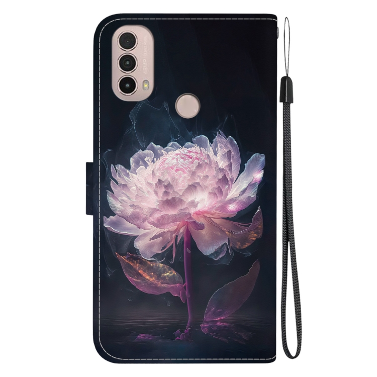 Funda para Motorola Moto E20 E30 E40 Cuero con Dibujo Textura de Cristal (Peonía Púrpura)