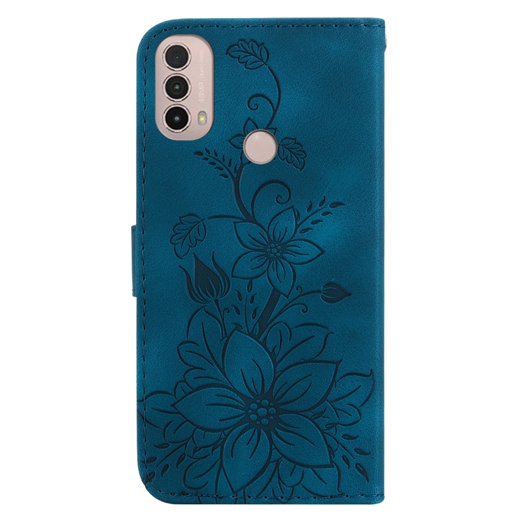 - 1x Funda para Motorola Moto E20 E30 E40 de Cuero con Relieve Lily (Azul Oscuro)