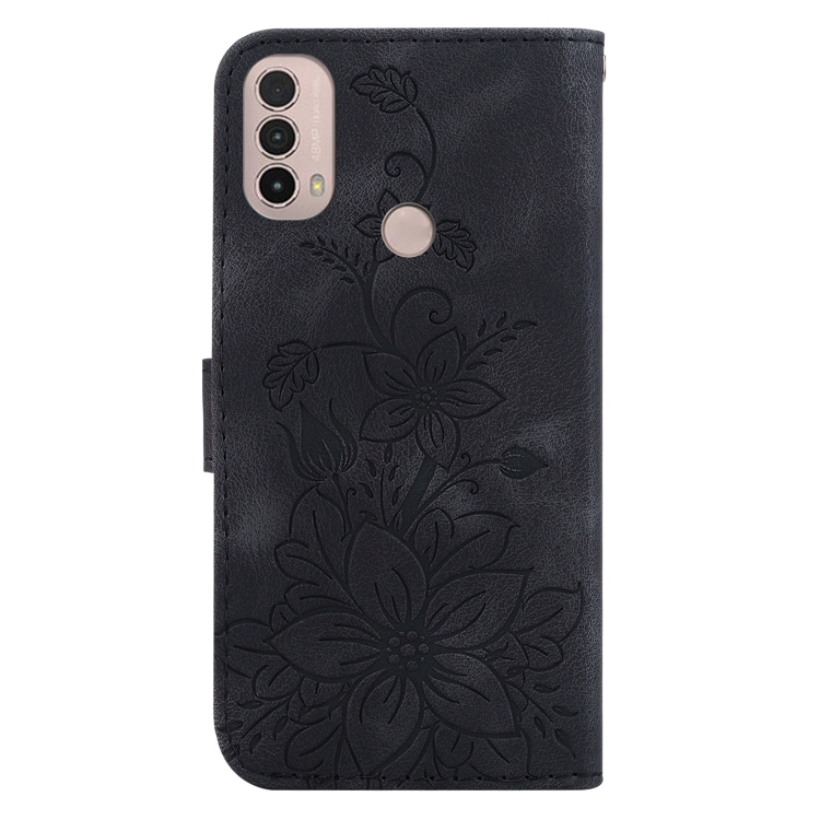- 1x Funda para Motorola Moto E20, E30 y E40 de Cuero con Relieve Lily (Negro)