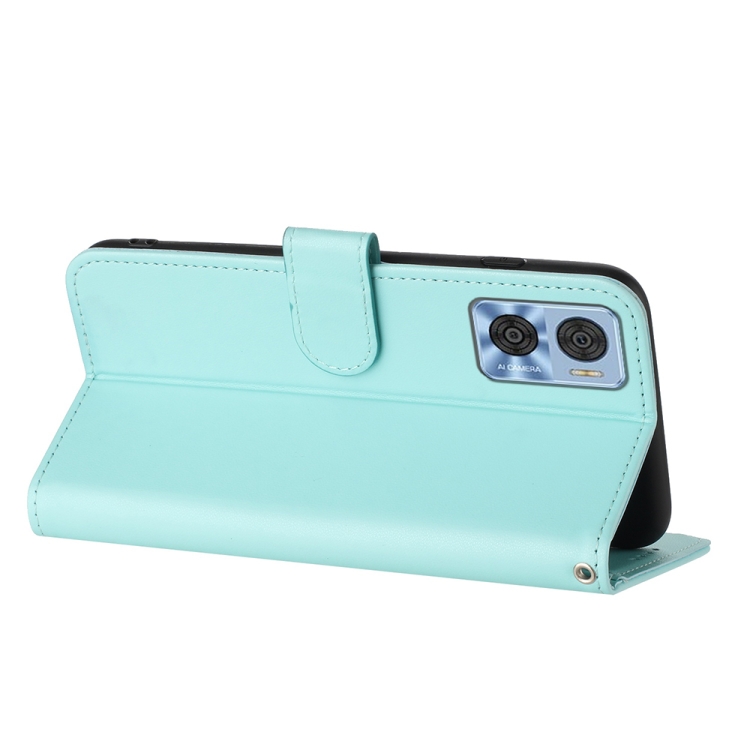 Funda de Cuero con Tapa para Motorola Moto E22 Datura Flower en Relieve (Azul Claro)