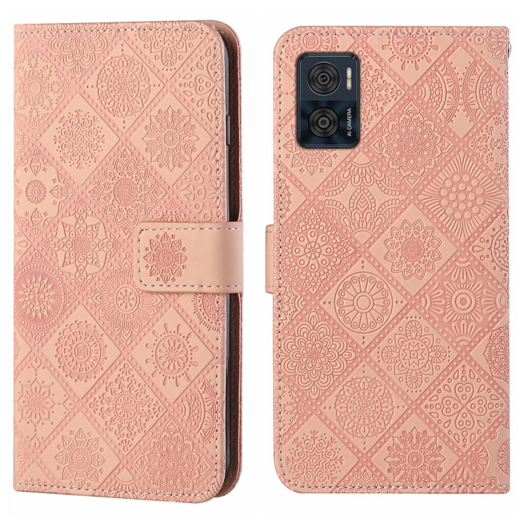Funda para Motorola Moto E22 / E22I de Cuero con Patrón en Relieve Estilo Étnico (Rosa)