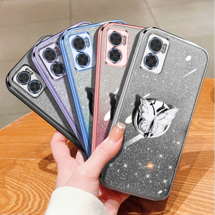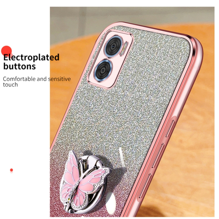 Funda TPU con Soporte de Mariposa para Motorola Moto E22 / E22I (Púrpura) Brillo Degradado Plateado
