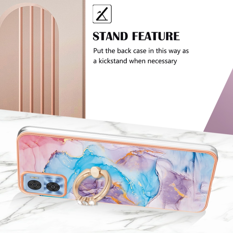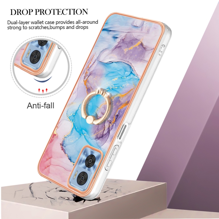 - 1x Funda TPU con Anillo para Motorola Moto E22 / E22I Galvanoplastia IMD (Mármol Azul)