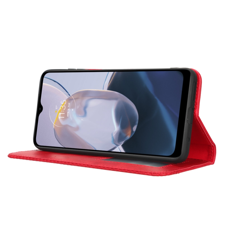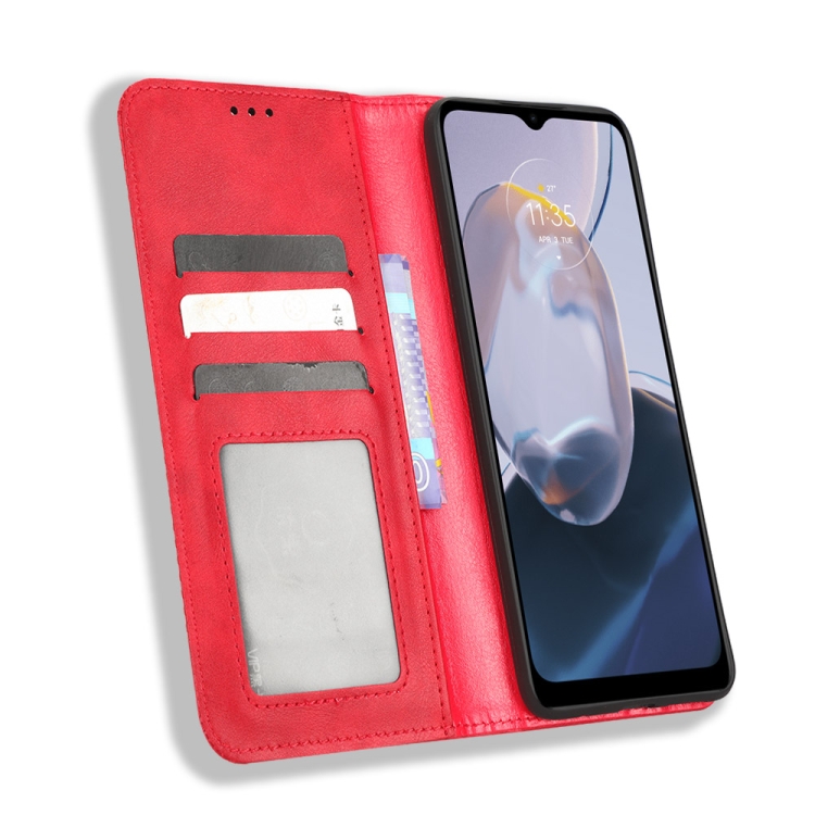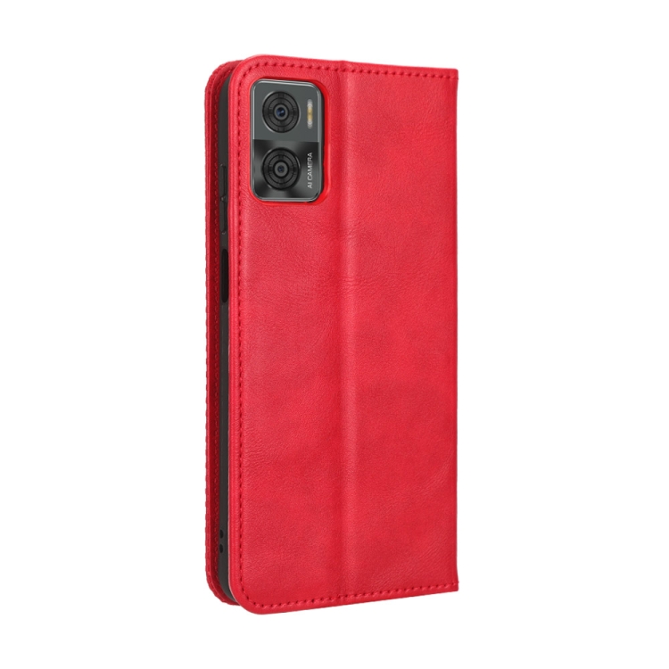 Funda de Cuero con Hebilla Magnética para Motorola Moto E22 / E22I Textura Retro (Rojo)