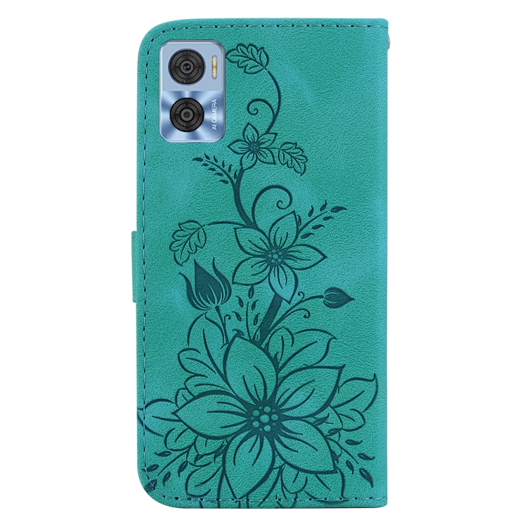 - 1x Funda de Teléfono Motorola Moto E22 / E22I Lily Cuero en Relieve (Verde)