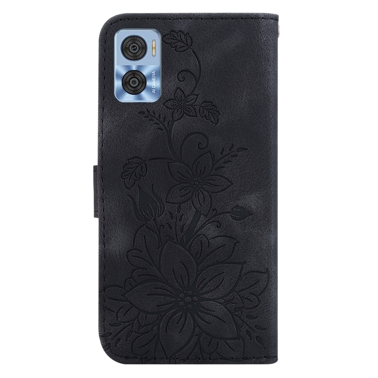 - 1x Funda para Motorola Moto E22 / E22I Lily Cuero en Relieve (Negro)