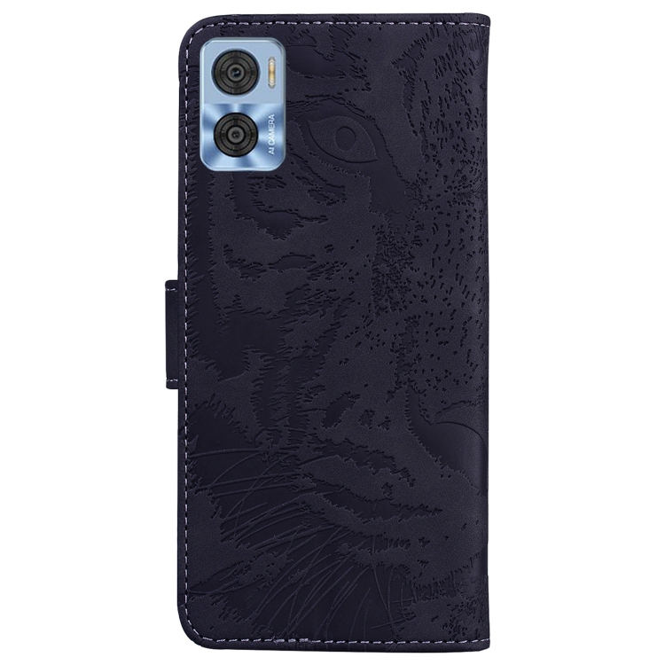 Funda de Cuero con Tapa Horizontal para Motorola Moto E22/E22I Tiger Embossing (Negro)