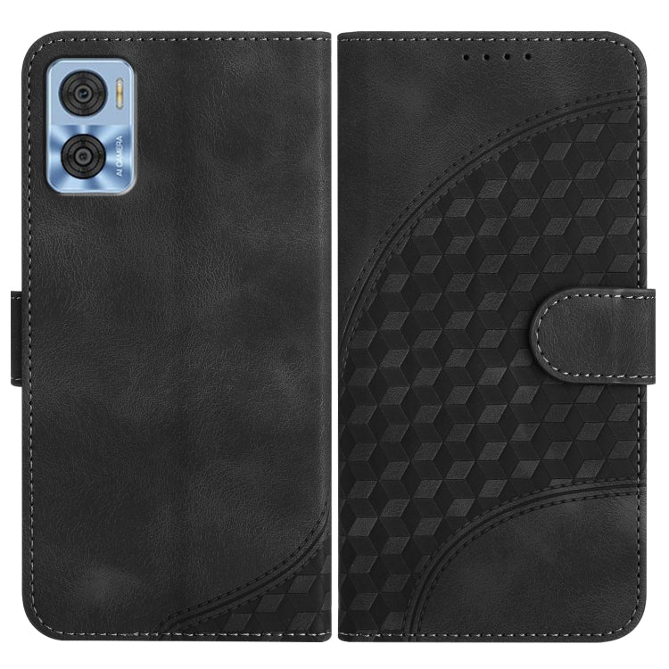 Funda de Cuero para Motorola Moto E22 Yx0060 con Relieve y Cabeza de Elefante con Cordón (Negro)