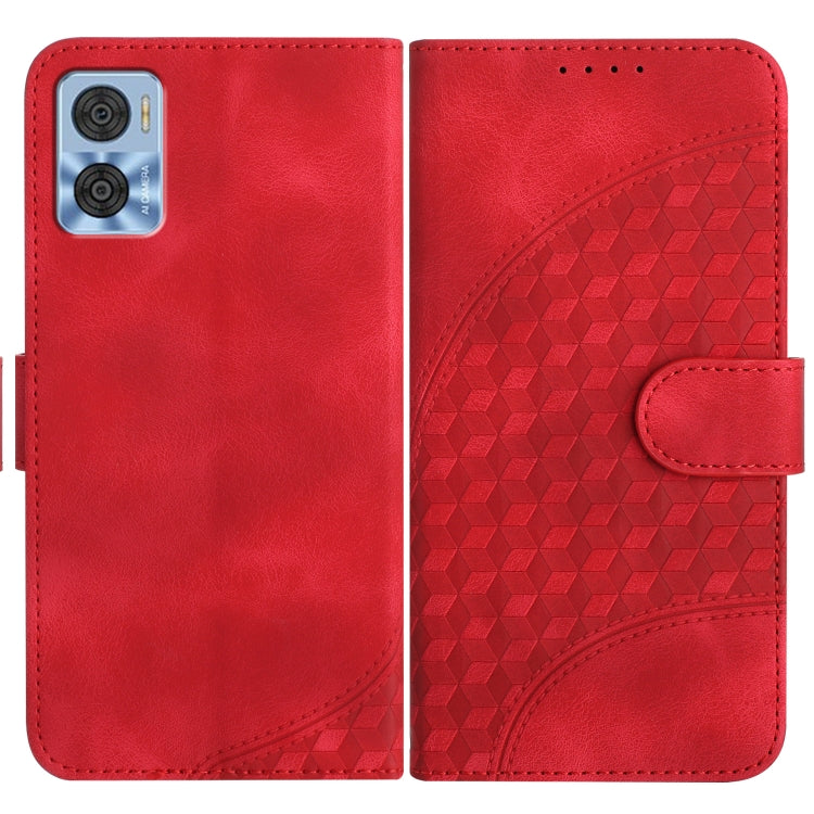Funda de Cuero para Motorola Moto E22 Yx0060 con Relieve y Cabeza de Elefante con Cordón (Rojo)