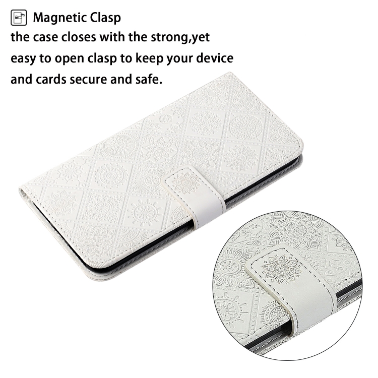Funda para Motorola Moto E22S / E32 4G de Cuero con Patrón En Relieve Estilo Étnico (Blanco)