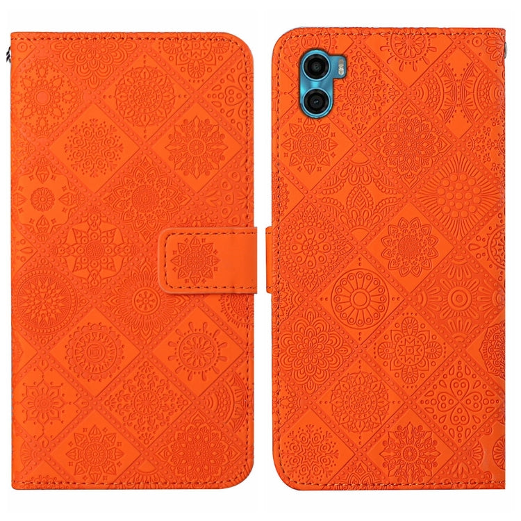 Funda para Motorola Moto E22S / E32 4G de Cuero con Patrón En Relieve Estilo Étnico (Naranja)