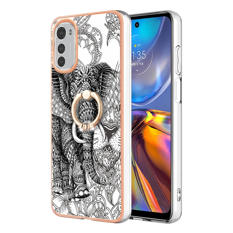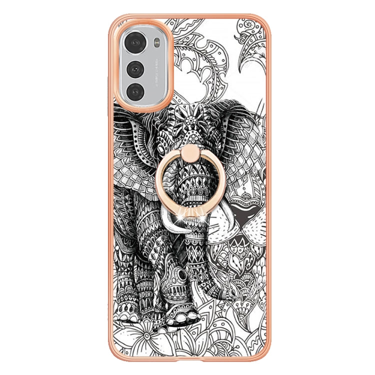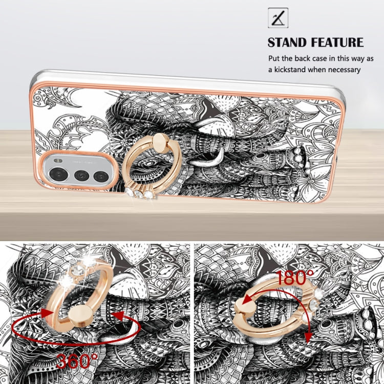 Estuche para Motorola Moto E32 4G / E32S Imd Doble Cara con Galvanoplastia y Soporte para Anillo (Totem Elephant)